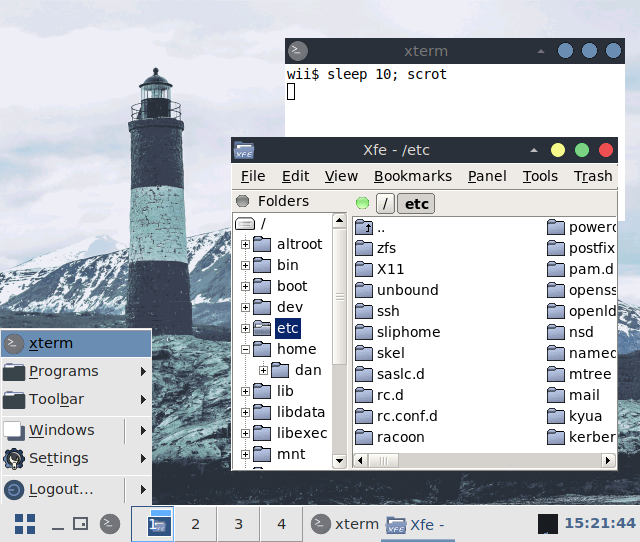 Personally, I also enabled four TTY consoles, by turning ttyE1 - ttyE3 on in /etc/ttys, but that's just me. Don't bother with this if you use an X11 desktop regularly. (tmux also goes a long way) And finally, I disabled ntpd in /etc/rc.conf. Don't do that if correct time settings are critical! Since I'm not using the Wii as a server, but a hobby workstation, conserving memory is more valuable then accurate time. (you can manually sync the clock if you need to, eg. ntpdate pool.ntp.org) I'm not going to tell you how to switch off the system, and so on - that's what the above mentioned Guide is for.